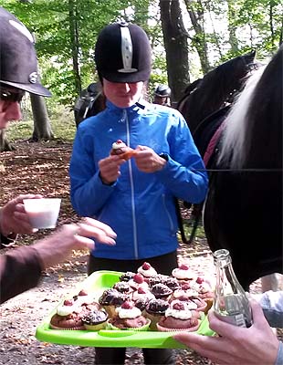 Gerade die Muffins finden so reißenden Absatz, dass auch der Chef samt Pferd Sorge hat, ob er auch noch sein Teilchen mitbekommt...