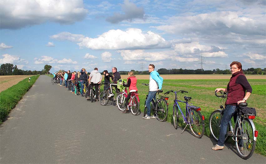 Aber auch die Radler lassen sich nicht lumpen! Schier endlos erstreckt sich deren Kette entlang der Landstraße, wohl wissend um den wunderschönen Wolken behangenen Himmel der Soester Börde!