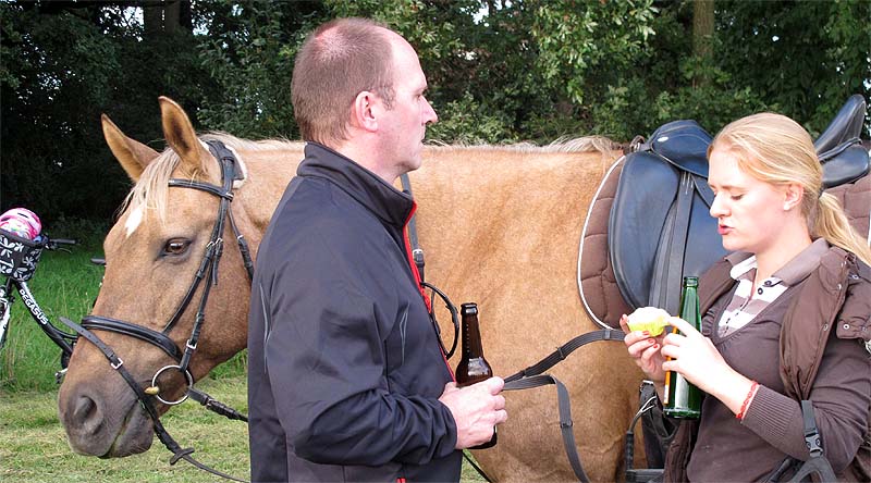 Wenn das soweit fertig ist und sich auch die Pferdeeinstaller in Schale geschmissen haben, trifft man sich zum "Warm-Up" im nahen Paddock...