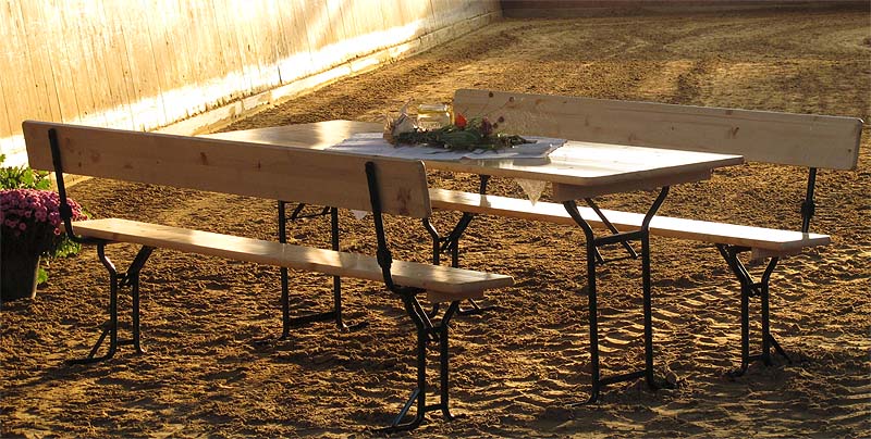In der Licht durchfluteten Reithalle stehen die vornehmen Bierzelt-Garnituren schon bereit,...