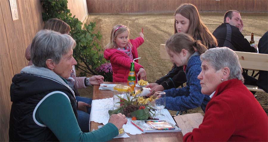 Draußen wird schon geplaudert, gegessen und getrunken... Moment mal, wo kommen denn die Currywürste und die Fritten her? Wir sind doch "auf dem Dorfe"!