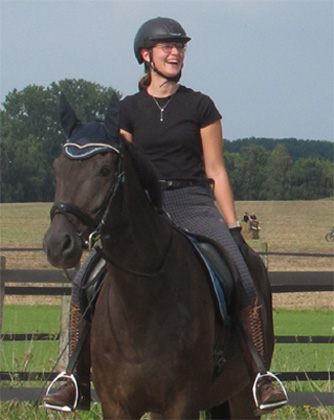 Diese Amazone freut sich und lacht, denn sie sieht Pferdeschwänze bei den Mädels und Pferden