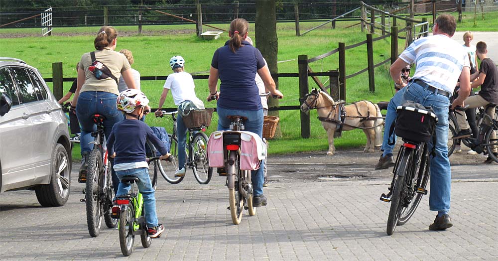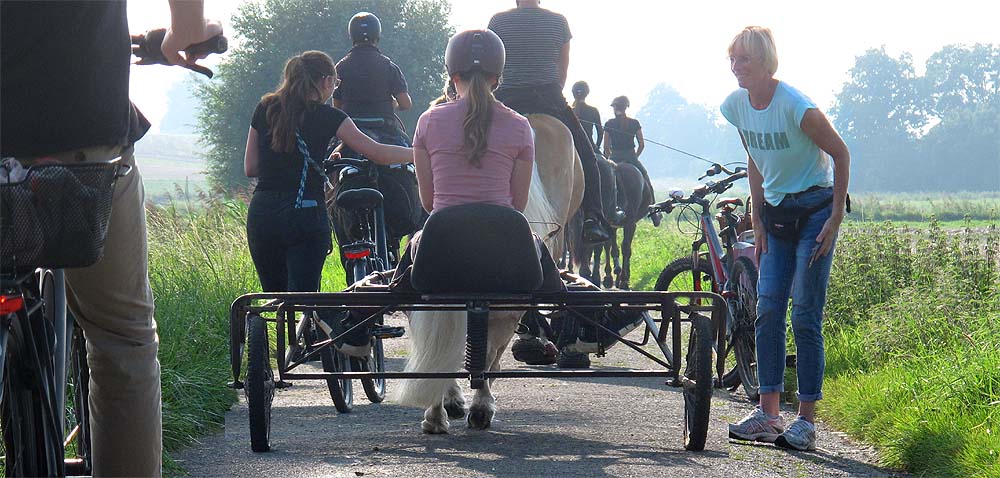 Die Radeler wollen auch so richtig los radeln, da bermerken sie Jules extra breiten Pony-Sulky