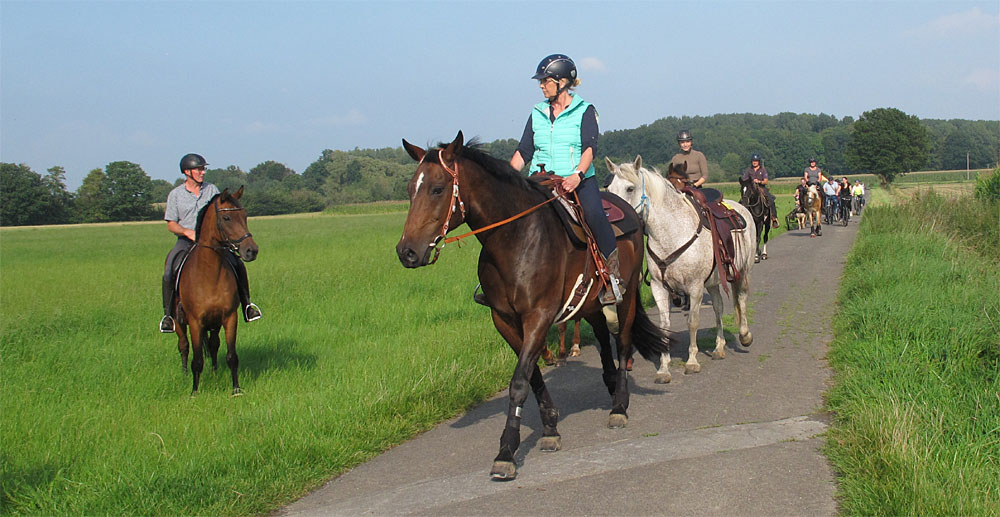 Das gemächlich schreitende Ausritt-Geschwader genießt den herrlichen Herbsttag absolut stressfrei und entspannt!