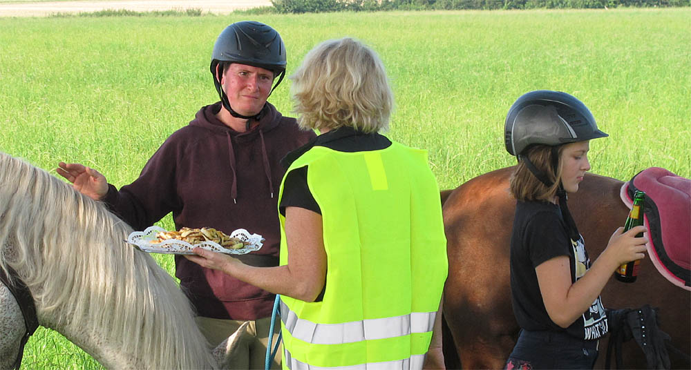 Auch die Reiter trudeln Schritt für Schritt ein und haben heftigen Hunger und dramatischen Durst, aber zuerst sind die Tiere dran!