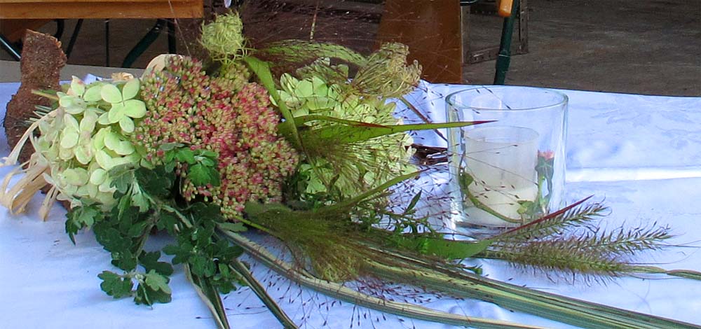Dort ist die offene Scheune mit viel Liebe herbstlich dekoriert und wartet geduldig auf die geladenen Gäste.