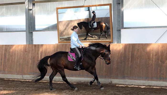 ...und im Spiegel korrigiert man seine Reithaltung. Die Fotografin