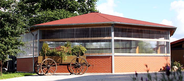 Unsere großzügig gebaute, lichtdurchflutete Reithalle