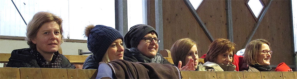 Die Tribüne ist mit Eltern voll besetzt, welche interessiert